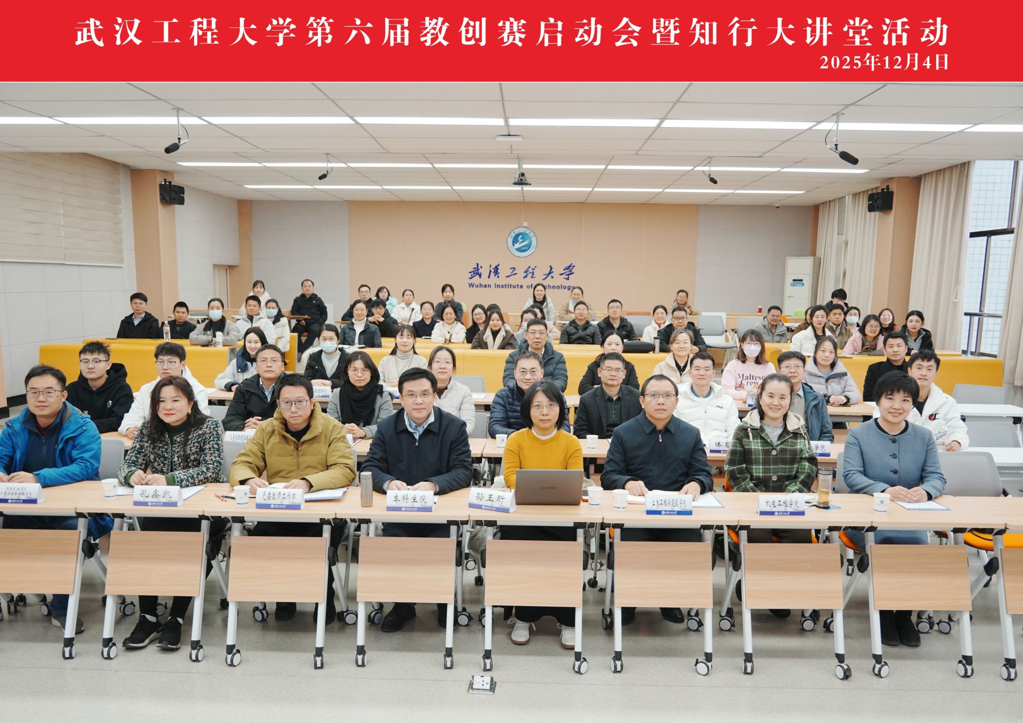 (通讯员 张荟)为深入贯彻落实教育数字化战略行动,扎实推进立德树人根本任务,全面提升教师教学创新能力与人才培养质量,12 月 4 日下午,武汉工程大学第六届教师教学创新大赛启动会暨 “知行大讲堂” 专题活动在流芳校区 L3307 教室成功举办。本次活动以 “赛事搭台、讲堂赋能” 的联动模式,将教学创新赛事部署与前沿育人理念培训深度融合,标志着学校新一轮教育教学改革实践的全面启幕,为打造高素质教师队伍、夯实高水平教学研究型大学建设根基筑牢了育人阵地。本科生院院长卢涛、党委教师工作部副部长陈云、各教学单位分管教学负责人、全体参赛教师及教学创新爱好者齐聚一堂,活动由本科生院副院长别尽秋主持。