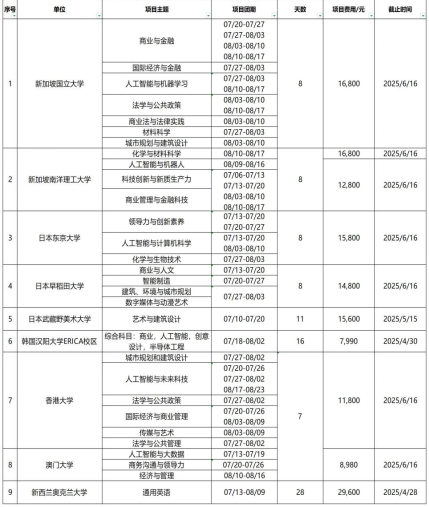 为开拓学生国际视野、培养学生国际交流能力、促进人才培养质量提升。学校拟组织选派相关专业优秀学生参加2025年暑期出国(境)交流项目,第二批项目具体情况如下。